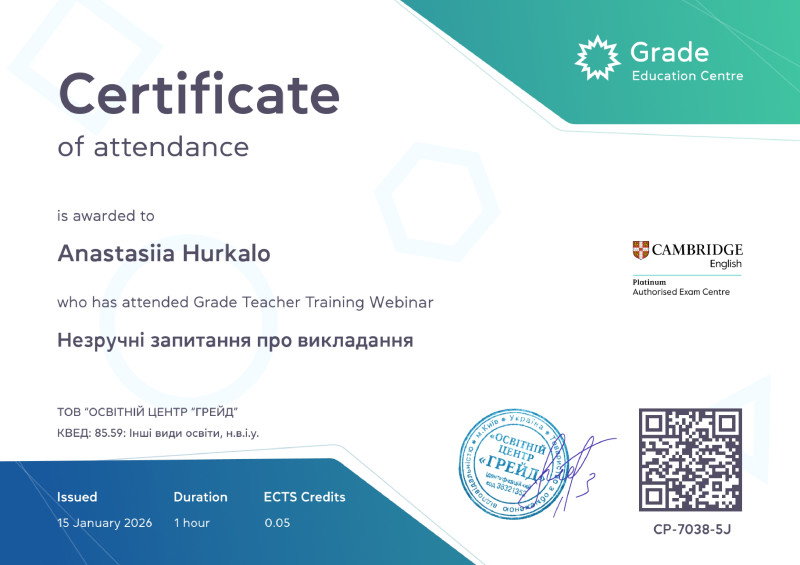 • Вінницький державний педагогічний університет ім. М.Коцюбинського. Магістр філології (мова і література (англійська, німецька))