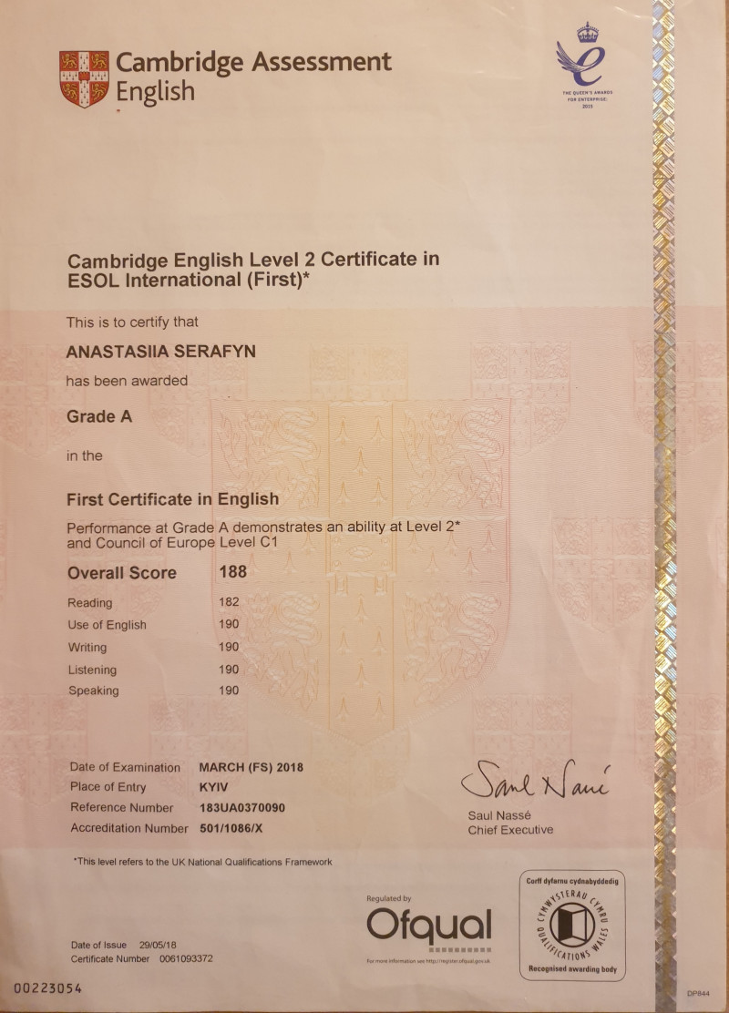 • Національний університет «Києво-Могилянська академія». Магістр: мови (англійська та українська) і комунікація.