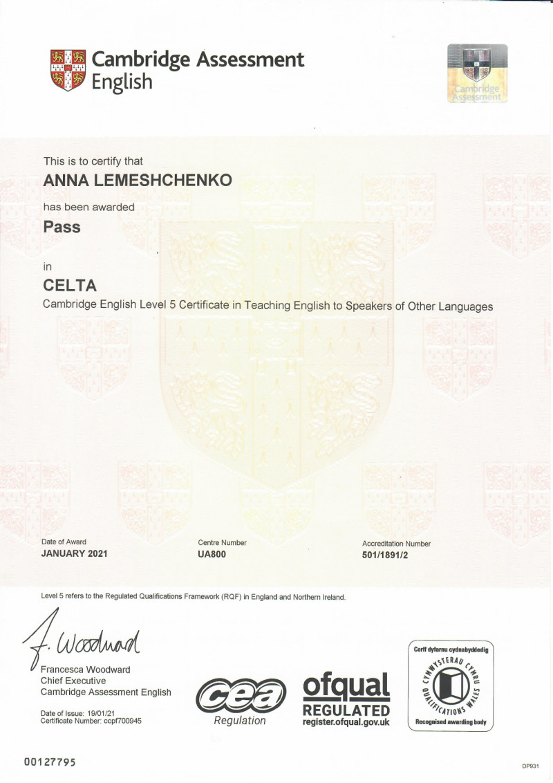 • CELTA (Certificate in English Language Teaching to Adults)