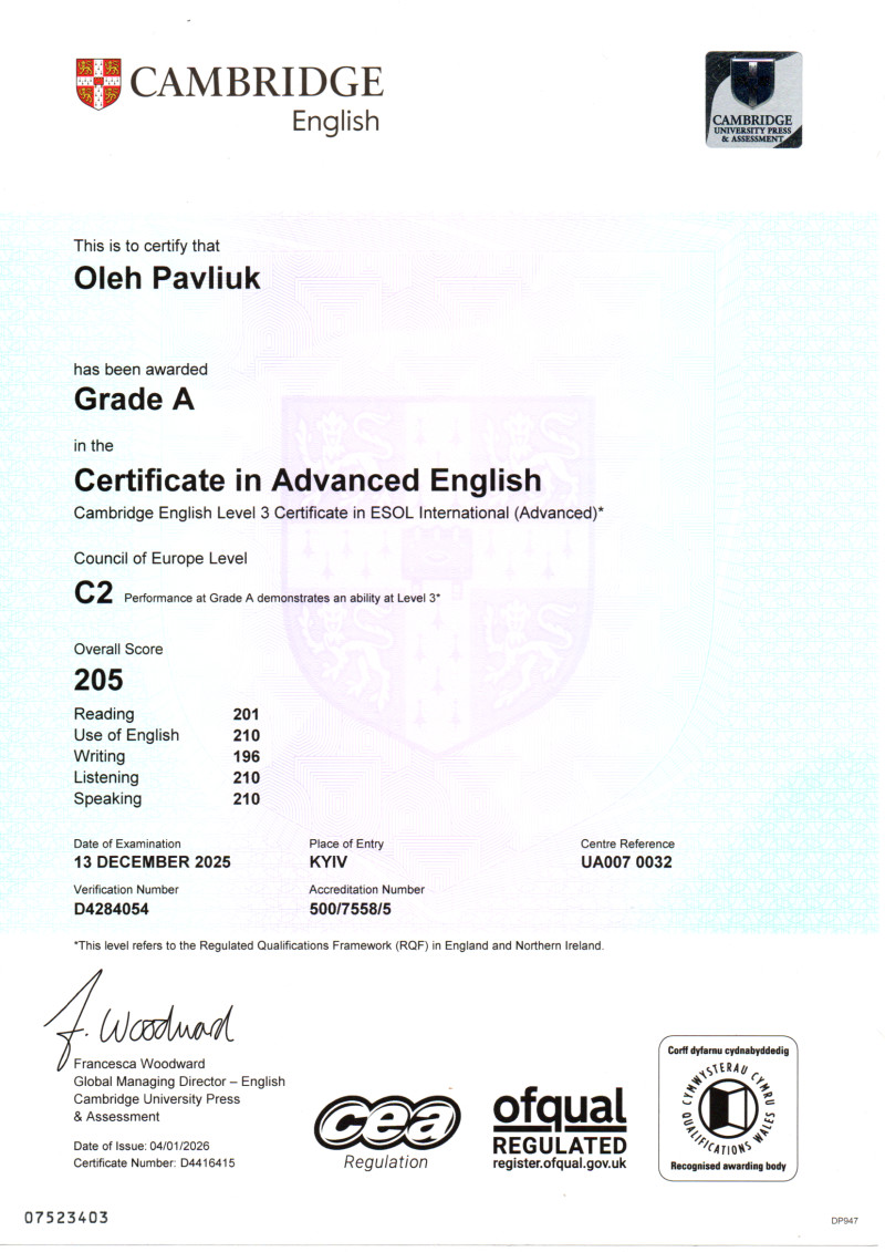 • Київський національний університет імені Тараса Шевченка. доктор філософії (Міжнародні відносини, суспільні комунікації та регіональні студії)