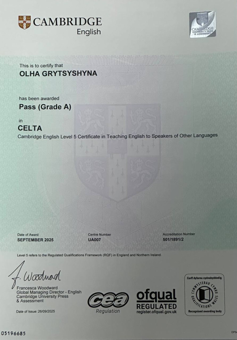 • Київський національний лінгвістичний університет. Спеціаліст з відзнакою: юрист зі знанням англійської та німецької мов