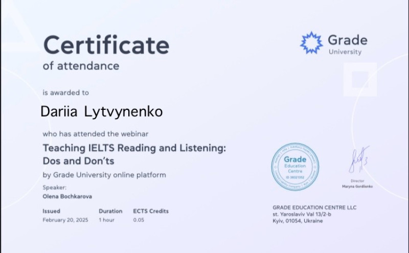 • Киевский лингвистический университет. Бакалавр филологии и перевода (германские языки и литературы)