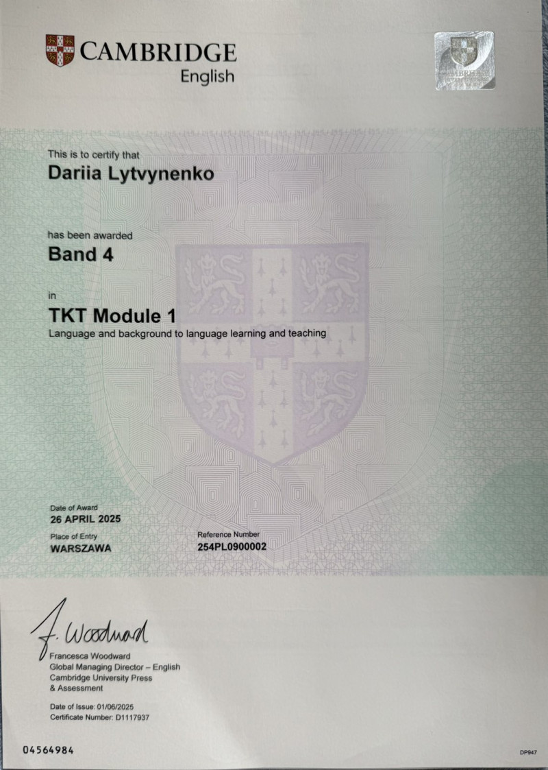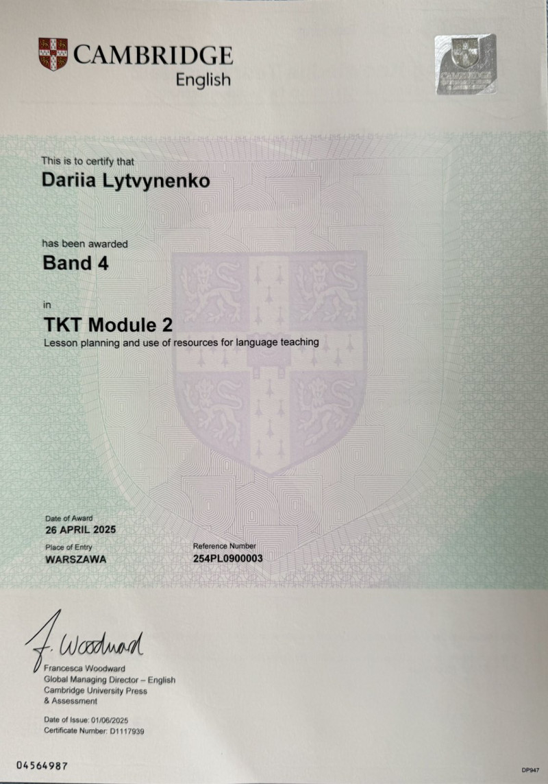• TKT (Teaching Knowledge Test) Modules: 1,2,3