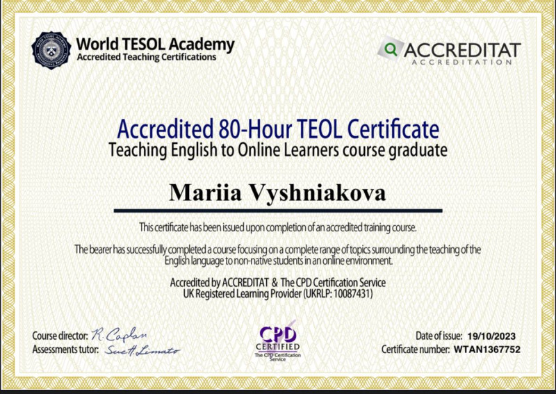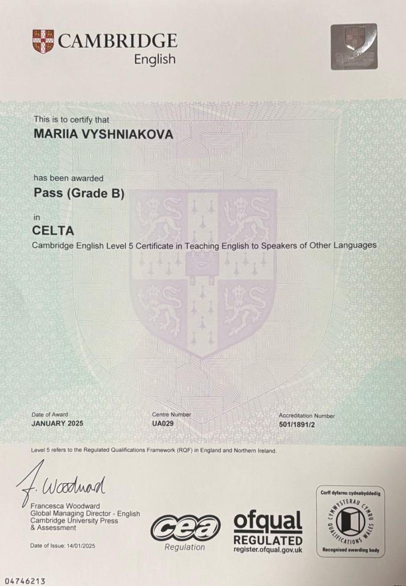 • Харьковский национальный университет имени В. Н. Каразина. Бакалавр филологии (английский язык и перевод включительно)