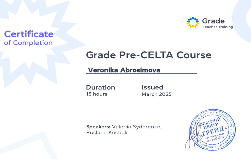 • Харьковский национальный университет им. В.Н. Каразіна. Бакалавр (Английский язык и литература и перевод и второй иностранный язык (китайский))