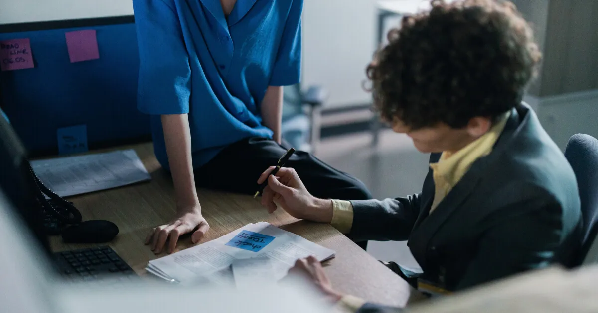 He is thinking about how to avoid a boring working meeting — Він думає, як уникнути нудної робочої зустрічі.