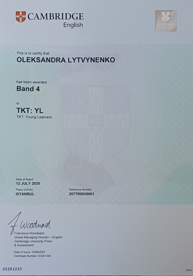 Teacher Trainer Senior Teacher General English Young Learners Exam preparation: A2 Key, B1 Preliminary, ЗНО/НМТ